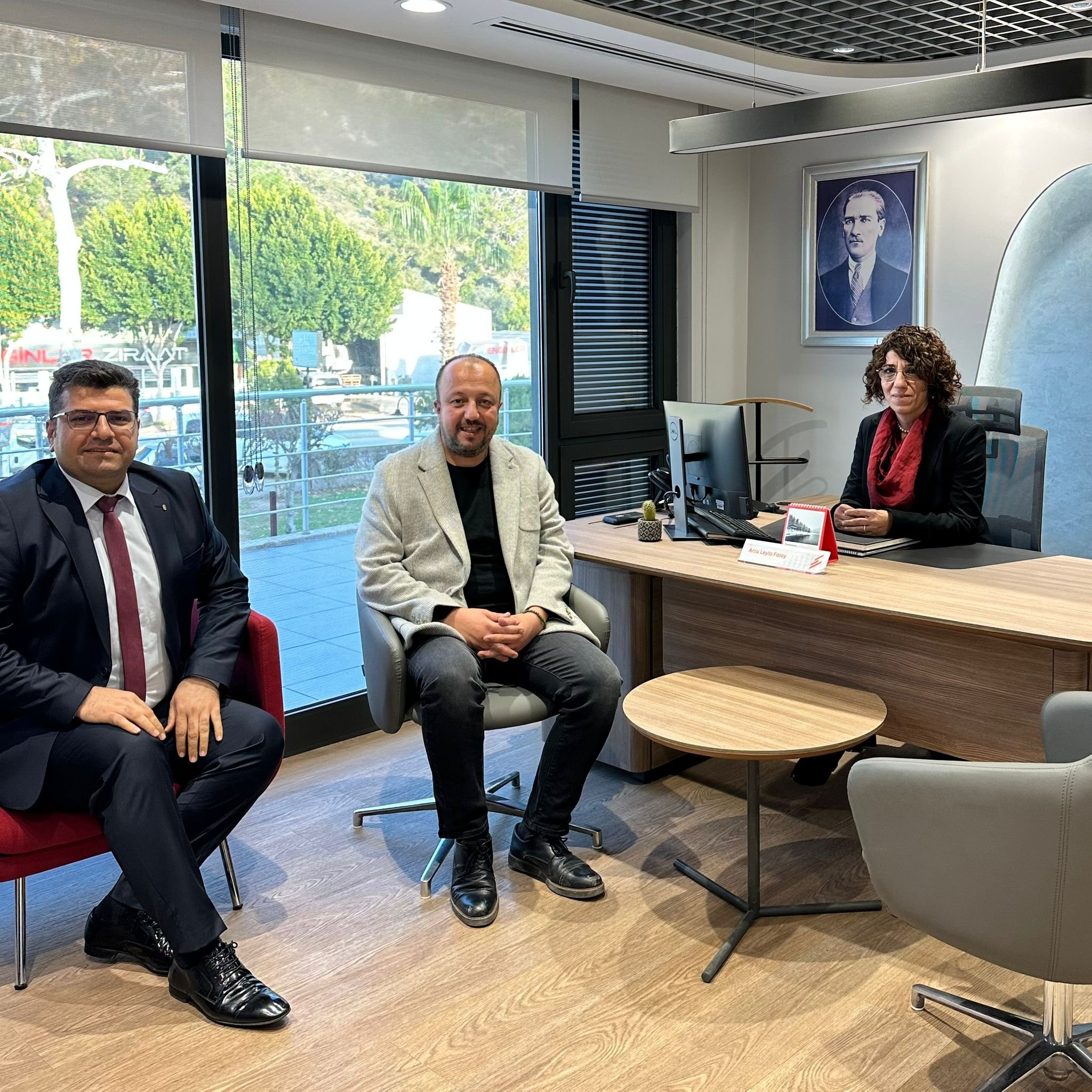 Sendikamız Antalya Şube Başkanı Yasin Akülkü, Halk Bankası Mavikent Şubesine Şube Müdürü olarak atanan Serhat Dayıoğlu’na hayırlı olsun ziyaretinde bulundu.