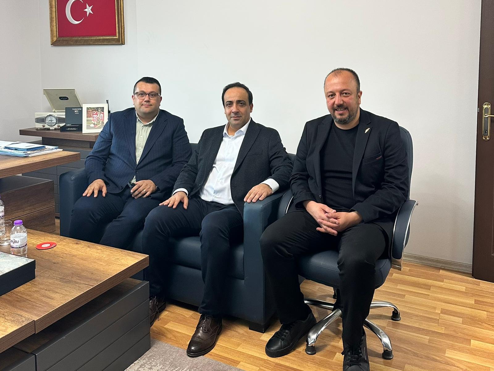 Halk Bankası Antalya Bölge Koordinatörü Sinan Gezenerler ile Bölüm Müdürleri Arzu Tezcan, Murat Baran ve Serkan Yörük, Sendikamız Antalya Bölge Başkanlığı yeni hizmet binasında Sendikamız Antalya Bölge Başkanı Yasin Akülkü'ye 'Hayırlı olsun' ziyaretinde bulundu.